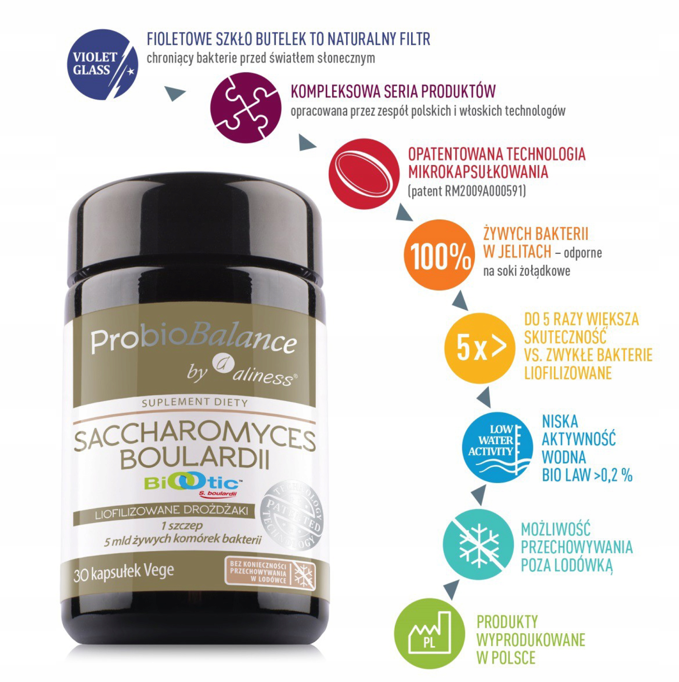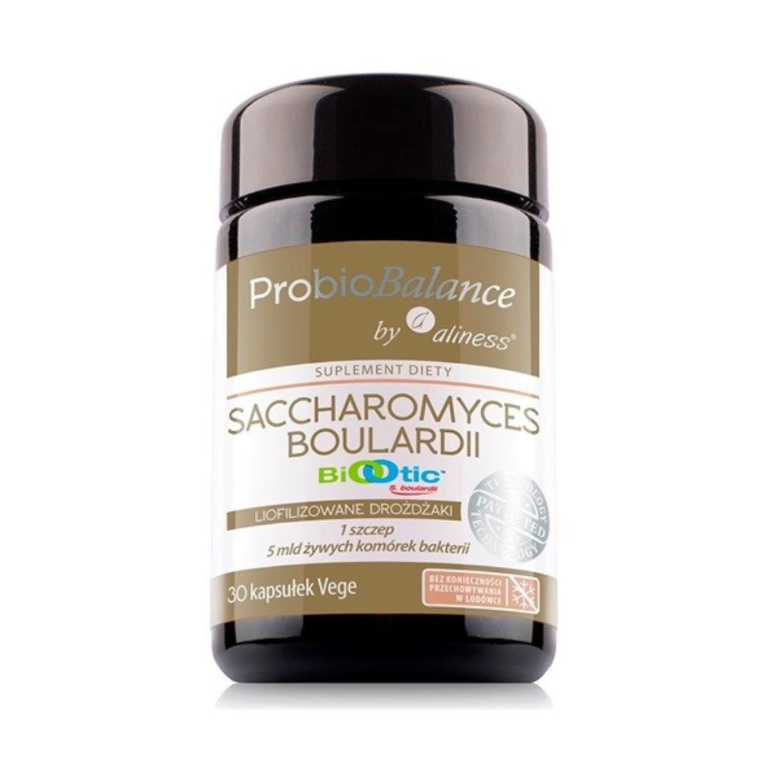 Aliness ProbioBALANCE Probiotyk Drożdzaki Saccharomyces Boualardii 5 mld/250mg x 30 vege caps. Flora bakteryjna Jelita Zespół jelita drażliwego Biegunka Perystaltyka